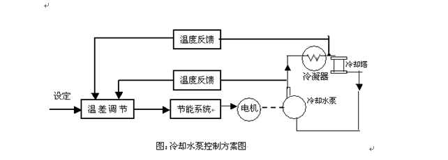 根據(jù)以上分析(以冷卻泵進行分析說明):由于冷卻塔的水溫是隨環(huán)境溫度而變的,其單側(cè)水溫度不能準確地反映冷凍機組內(nèi)產(chǎn)生熱量的多少。所以,對于冷卻泵,以進水和回水之間的溫差作為控制依據(jù),來實現(xiàn)進水和回水的恒溫差控制。