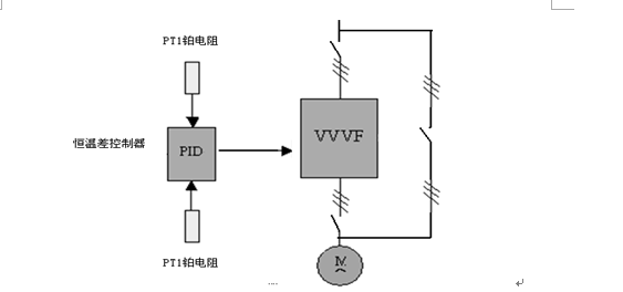 ●恒溫差控制器,用于對Pt1和Pt2測得的溫度信號進行轉(zhuǎn)換、放大、求差,再進行PID恒溫差運算處理后,得出0—10V模擬信號,輸出,作為變頻器的頻率給定信號。如下圖:
