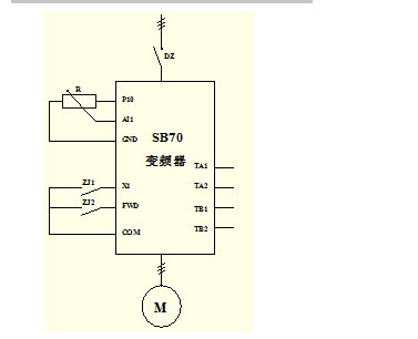 每個工序的變頻器控制原理基本相同,因此只畫一張圖作為代表。另外,工段和工序不同,功能設置也有一些差別,表中僅列出泥漿泵SB70G220變頻器功能設置參數(shù),僅供參考。