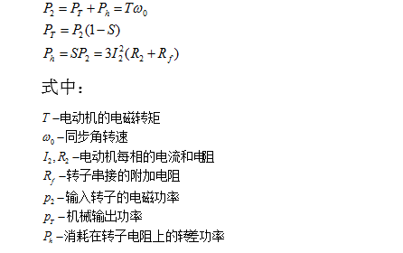 目前國內各類礦山等提升機大都采用交流繞線式異步電動機轉子串電阻方式調速方案,使用交流接觸器改變轉子電阻來進行速度段的切換。對于繞線式電機,無論在起動?制動還是調速中,采用轉子串電阻方式均會帶來電能損耗。這種損耗隨著轉速的降低,轉差率S的增大而增大。繞線式電機的功率關系為: