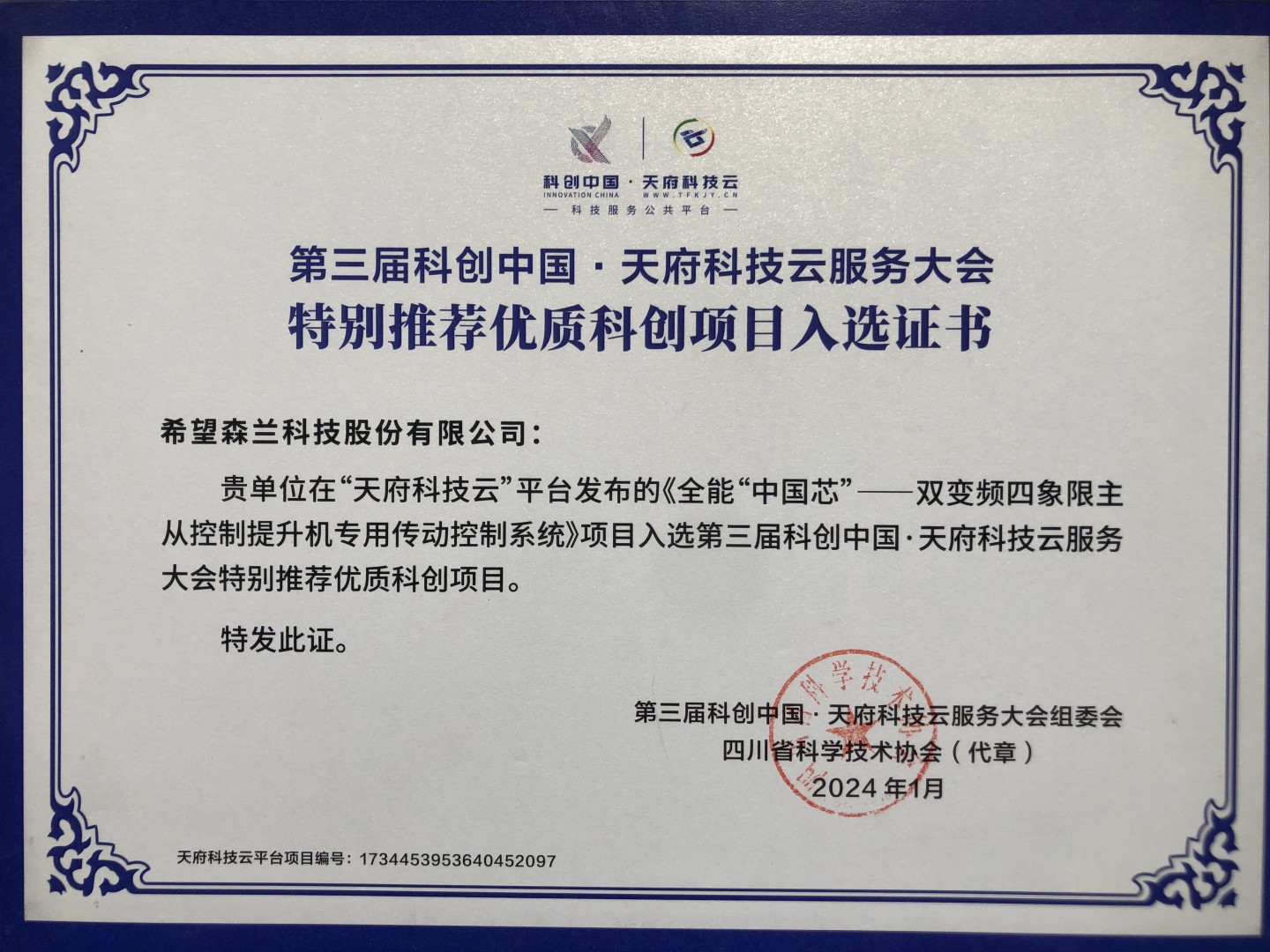 本屆大會(huì)面向大院大所大企業(yè)等征集到科創(chuàng)項(xiàng)目8700個(gè),希望森蘭科技股份有限公司作為國(guó)內(nèi)專業(yè)從事傳動(dòng)控制技術(shù)研究的領(lǐng)軍企業(yè),憑借硬核解決方案成功吸引了大會(huì)的關(guān)注。不僅被選為本屆重大高新技術(shù)待推廣項(xiàng)目,還榮獲了“特別推薦優(yōu)質(zhì)科創(chuàng)項(xiàng)目”獎(jiǎng)項(xiàng)。