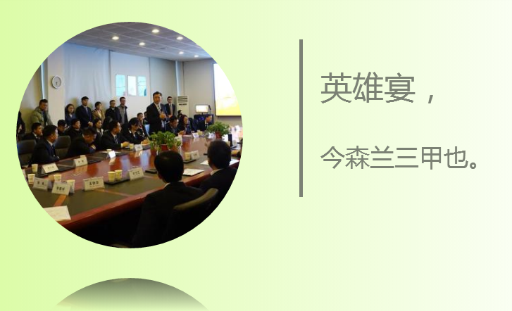 提起英雄宴, 是否會(huì)想起那場(chǎng)“華山論劍”。 “華山論劍”出自金庸《射雕英雄傳》,指武林高手在華山爭(zhēng)奪武功第一。與此相對(duì)的是森蘭銷售精英在中華大地競(jìng)爭(zhēng)業(yè)績(jī)?nèi)祝簿褪巧m·英雄宴。 長(zhǎng)歌一曲俠客行,劍鋒不染風(fēng)未停。 廿年老店,初心不忘,砥礪前行;仍修煉,顧視皆英雄也。若是肝膽照昆侖,又一年,可取三甲否? 吃江湖菜,行江湖事 提酒捧壺,做江湖人 尋找屬于自己的江湖路 其后一刻,將近酒,杯莫停; 君又一醉,道天明,執(zhí)劍忘天涯;三分酒氣,七分劍意;不鳴則已,來年定當(dāng)三甲。 具懷逸興壯思飛,欲上青天攬明月。 于江湖中行走,當(dāng)風(fēng)雨襲來的時(shí)候,愿做一個(gè)身披蓑衣、目光如炬的客! 半段賦,半盞茶,半身青衫,半筆江山……
