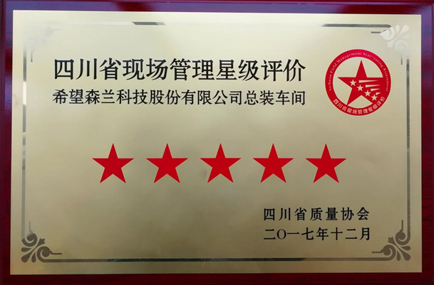 2018年1月4日,公司總裝車間被評為“四川省現(xiàn)場管理星級評價五星級現(xiàn)場”。同期榮獲五星級現(xiàn)場的公司還有通威太陽能(成都)有限公司、中國核動力研究設(shè)計院設(shè)計所、中國兵器裝備集團(tuán)自動化研究所。