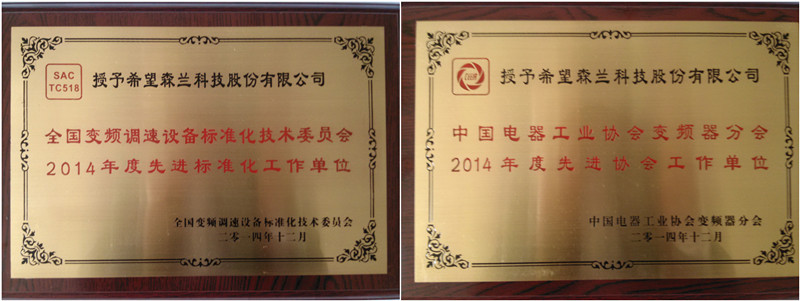 會議表彰了變頻器分會及標(biāo)委會年度先進(jìn)工作單位,希望森蘭科技股份有限公司榮獲“2014年度先進(jìn)協(xié)會工作單位”和“2014年度先進(jìn)標(biāo)準(zhǔn)化工作單位”兩項(xiàng)殊榮。同時,希望森蘭的SBH系列高壓變頻器和SB70高性能矢量控制變頻器榮獲中國電器工業(yè)協(xié)會“質(zhì)量可信產(chǎn)品”榮譽(yù)。多年以來,希望森蘭作為變頻器分會的會員,認(rèn)真履行會員職責(zé),主動參與協(xié)會建設(shè),積極參加各項(xiàng)活動,保證協(xié)會各項(xiàng)建設(shè)深入扎實(shí)地開展。