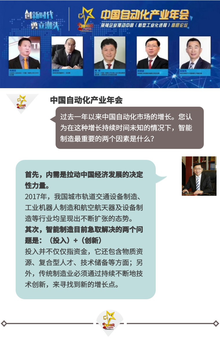 針對(duì)過去一年以來中國自動(dòng)化市場的增長的原因、持續(xù)時(shí)間,以及智能制造的組成因素等問題,論壇主持人對(duì)中國自動(dòng)化產(chǎn)業(yè)的領(lǐng)袖企業(yè)高層進(jìn)行了逐一采訪。