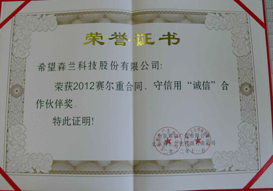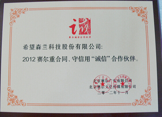 在2012年11月30日,在北京舉行的第二屆設計師優(yōu)選品牌評選活動上,森蘭變頻器憑借過硬的產品質量和良好的市場口碑在榮獲““設計師優(yōu)選十大變頻品牌”稱號的同時,還榮獲了行業(yè)媒體頒發(fā)的重合同、守信用“誠信”合作伙伴獎。